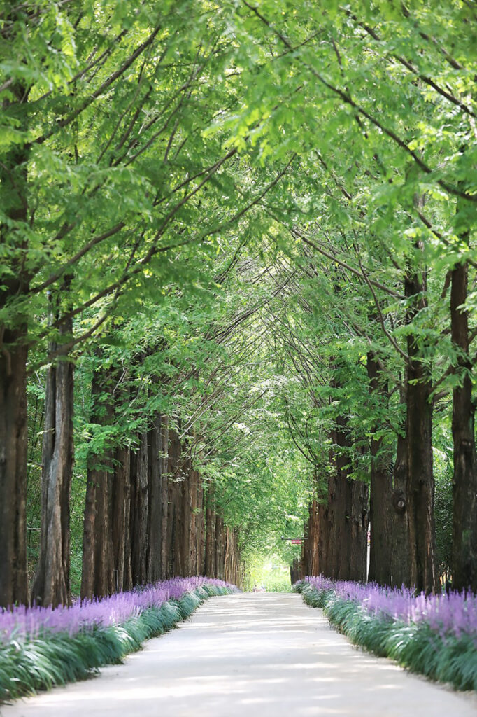 보랏빛 마법이 시작되는 메타세쿼이아 숲길