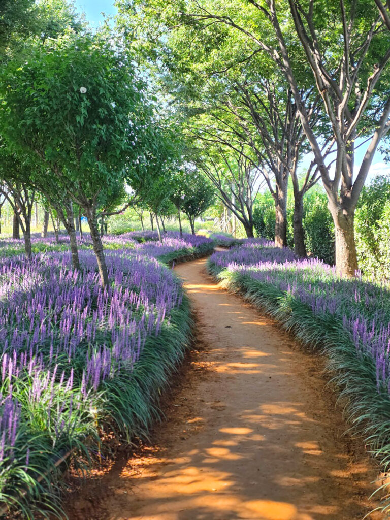 8월 말까지 절정을 이루는 맥문동 꽃길은 SNS에서 ‘인생샷 명소’로 이미 입소문이 난 곳이었다. 올해 다른 명소들의 맥문동이 전멸했다는 소식 속에서도 이곳만은 만발한 꽃들로 방문객들을 반기고 있었다. 햇살이 나무 사이로 스며들어 보랏빛 꽃잎을 비추는 순간, 정말로 요정이 나타날 것만 같은 몽환적인 풍경이 완성되었다.